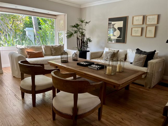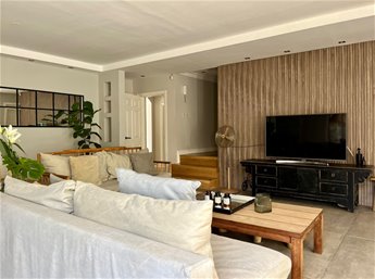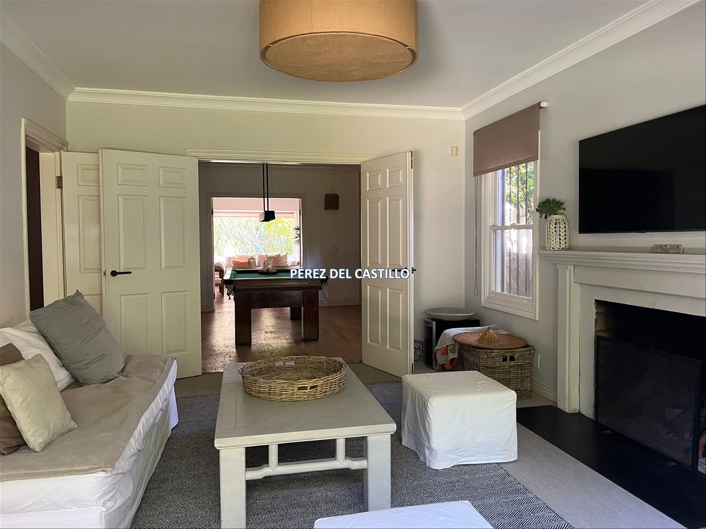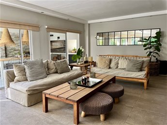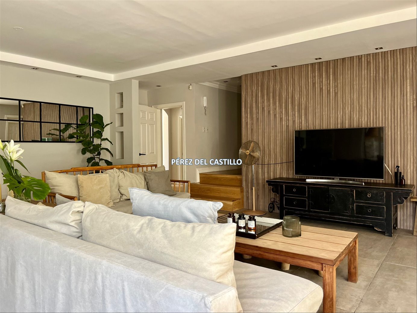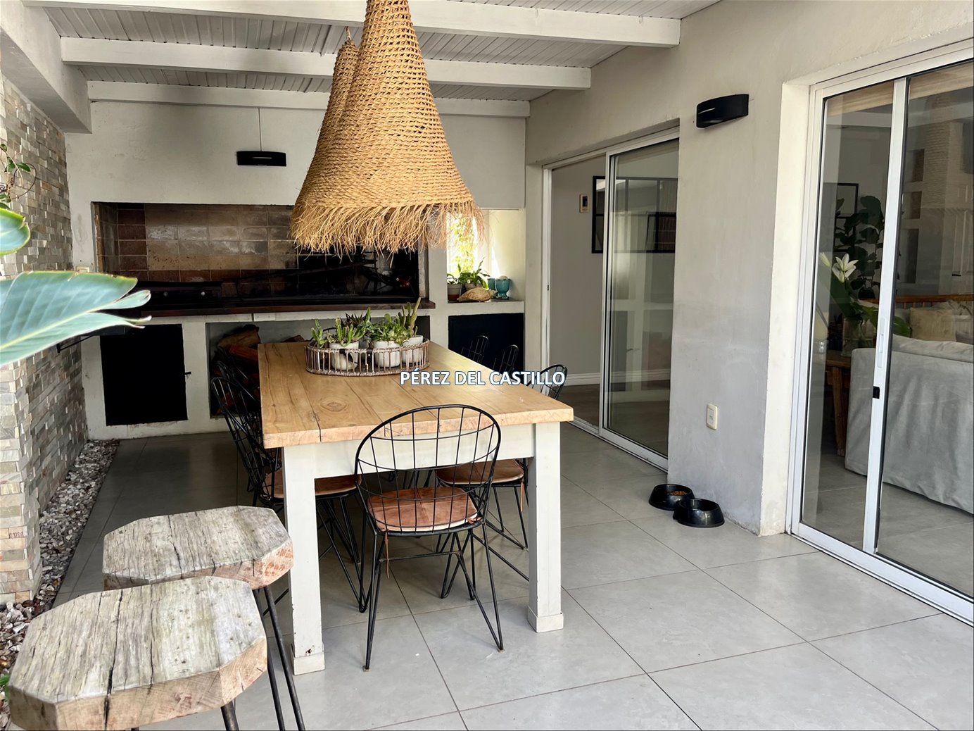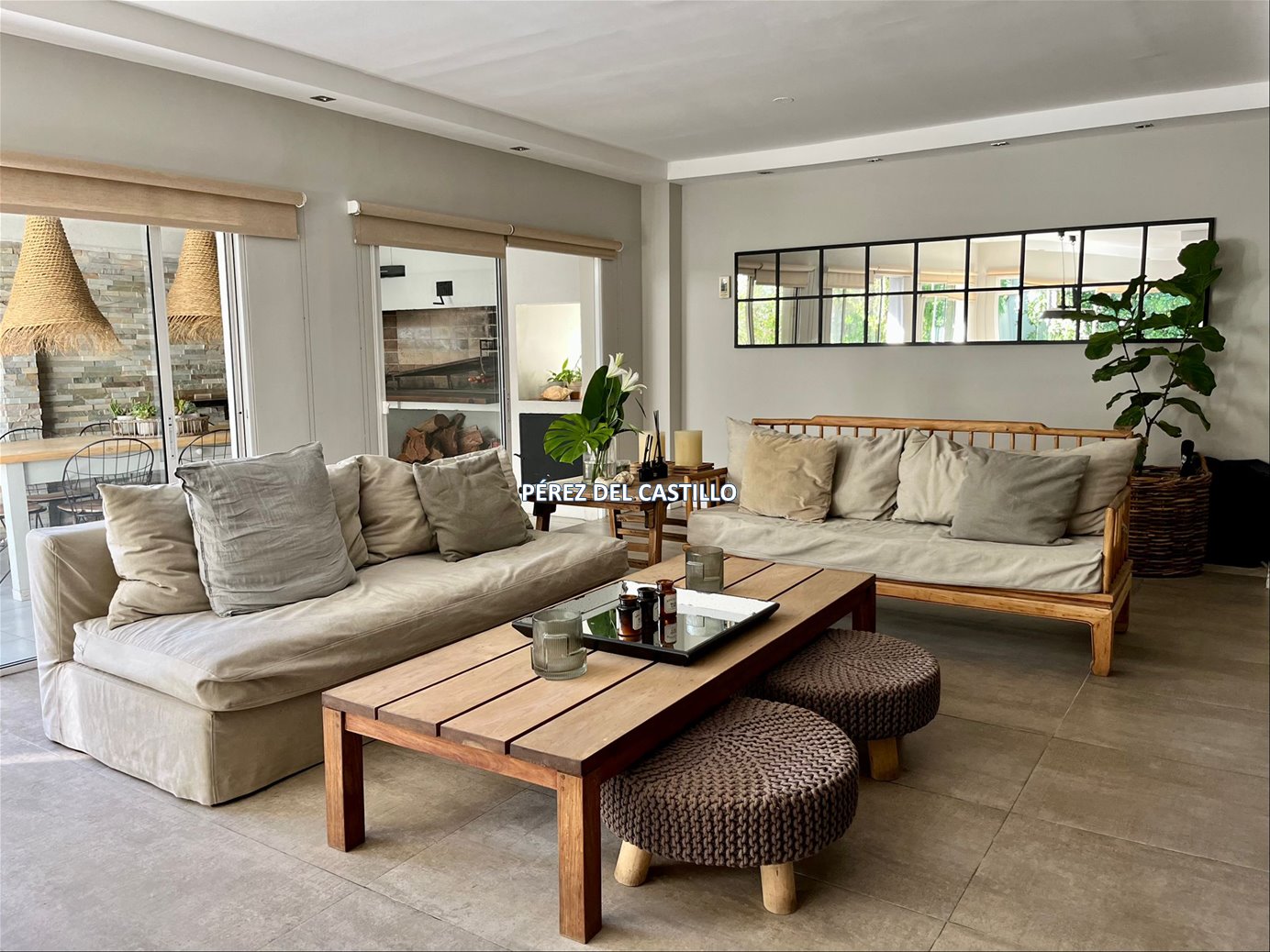 Hall de entrada, living, comedor separado, estar, los tres ambientes integrables. Toilette, cocina definida y un gran estar tipo barbacoa vidriado.