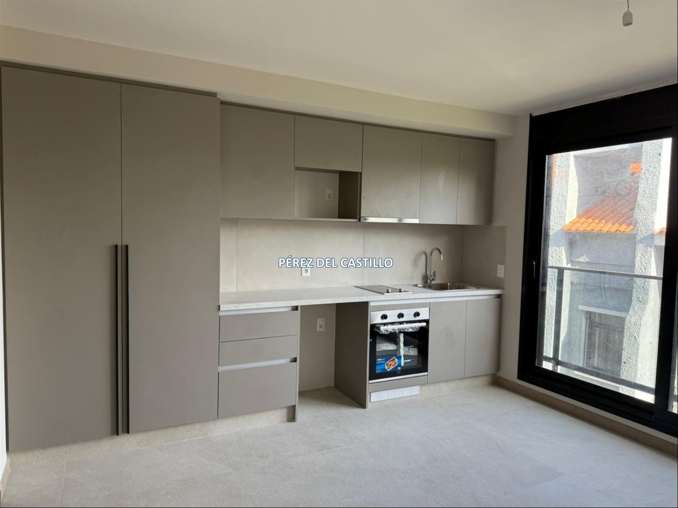 Luminoso monoambiente, un baño completo con mampara en ducha, Living comedor. Cocina integrada. Aire acondicionado y rollers.