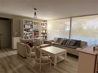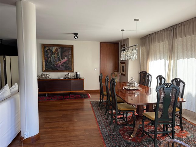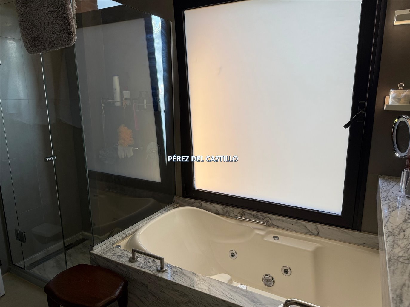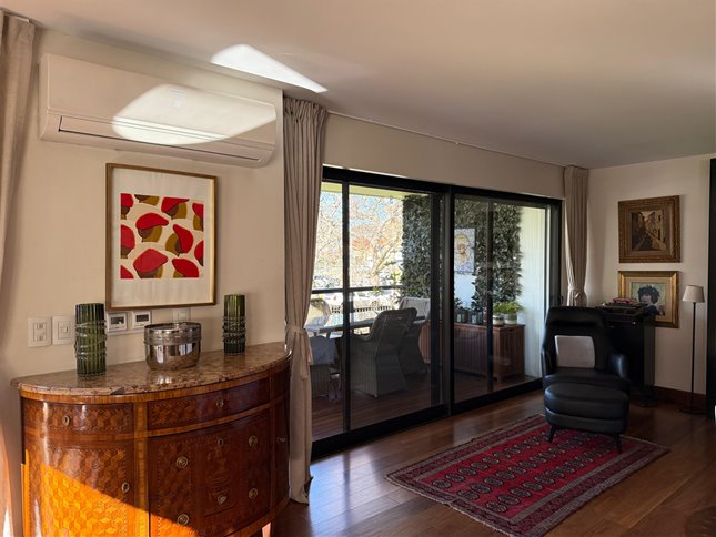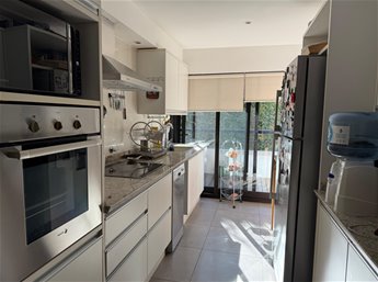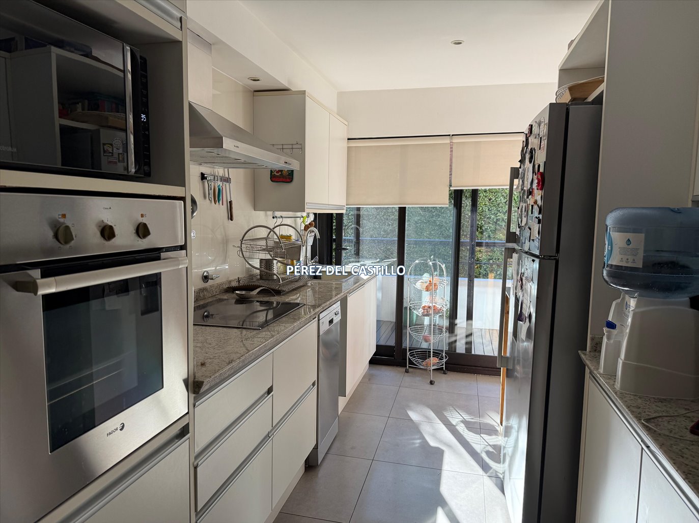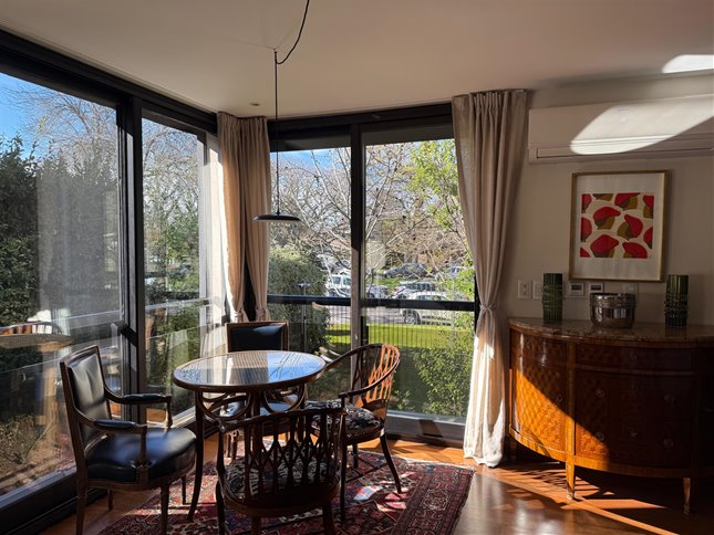 Muy amplio living comedor con salida a Terraza. Cocina independiente. Entrada de servicio. Tres dormitorios, principal en suite. Vidrios dobles. Calefacción losa radiante euro cable individual por ambiente y agua caliente central por caldereta a gas. Aire acondicionados. Cochera independiente para dos autos. Lavadero.