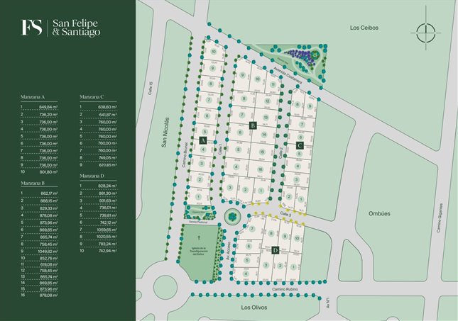 El lugar se sitúa lindero a San Nicolás, sobre las apacibles calles Rubino y Camino Brunel, a pocos metros de la nueva iglesia. El barrio conecta con lo mejor de la ciudad y, al mismo tiempo, con la calma de la reserva rural. Es un espacio concebido para el bienestar de las familias, con seguridad controlada y un total de 45 lotes individuales que van desde los 700 hasta los 1200 m².